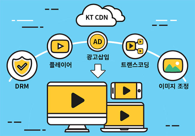 부가 서비스는 기존 KT CDN 고객 또는 신규 고객을 대상으로 CDN 서비스와 연관된 p트랜스코딩 p광고 삽입 p멀티 플레이어 지원 pDRM p이미지 조정 같은 새로운 기능을 추가하여 제공하는 서비스로서, 고객은 필요한 서비스만을 선택적으로 사용할 있으며, 이를 통해 손쉬운 관리 운영, 투자비 절감으로 인한 수익성 극대화 양질의 미디어 콘텐츠 가공과 전달이 가능해진다.